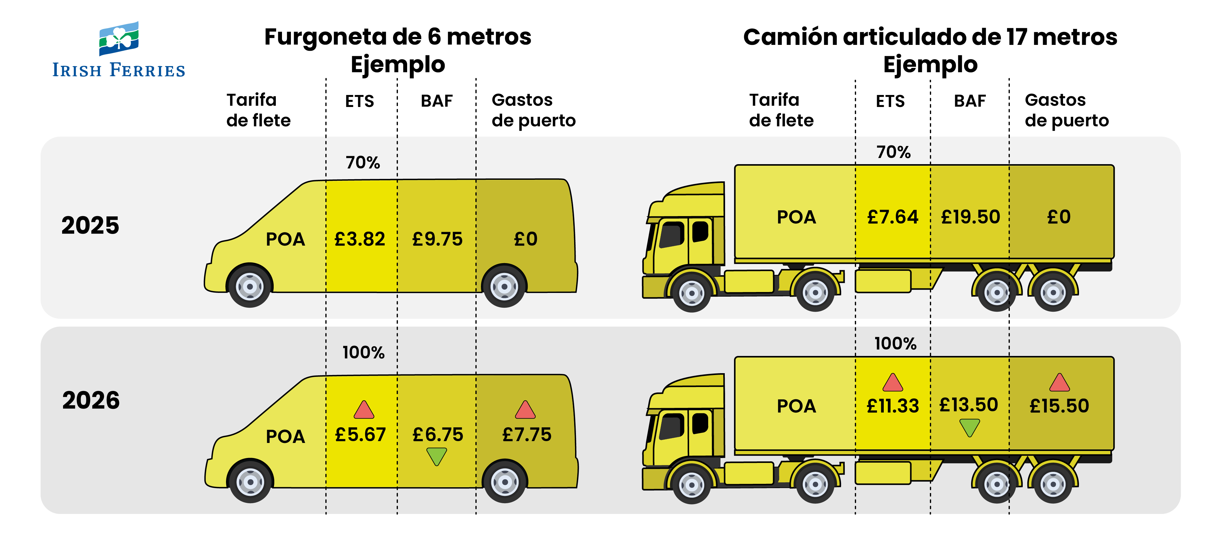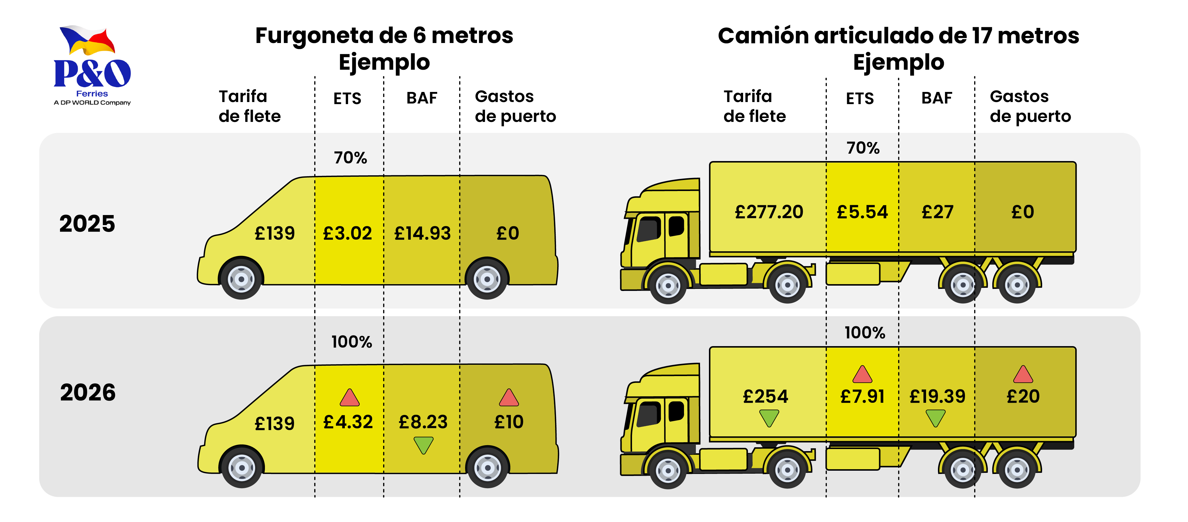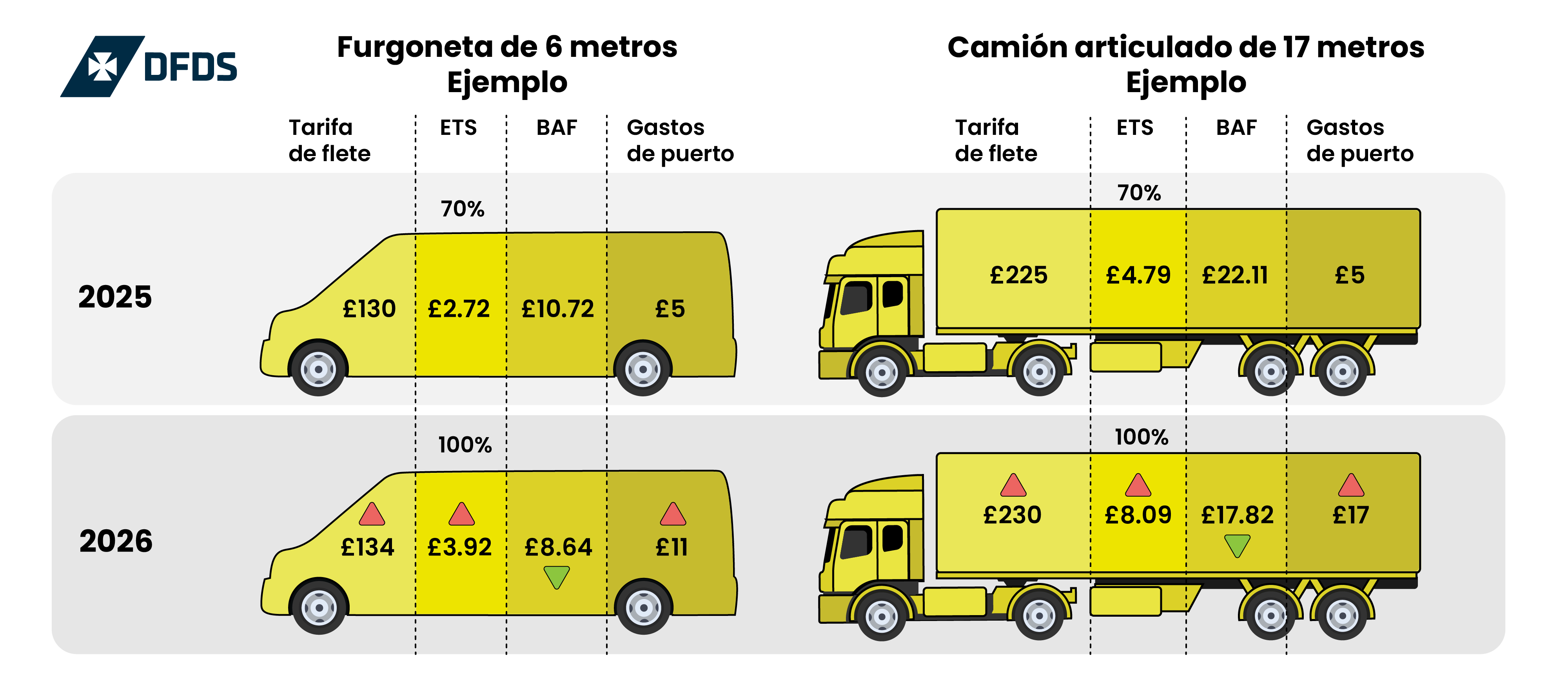 A partir del 1 de enero de 2026, DFDS, Irish Ferries y P&O Ferries introducirán una nueva tarifa portuaria en el estrecho de Dover. Esta tarifa se sumará a las tarifas ETS (100 %) y BAF, así como a los incrementos por inflación.